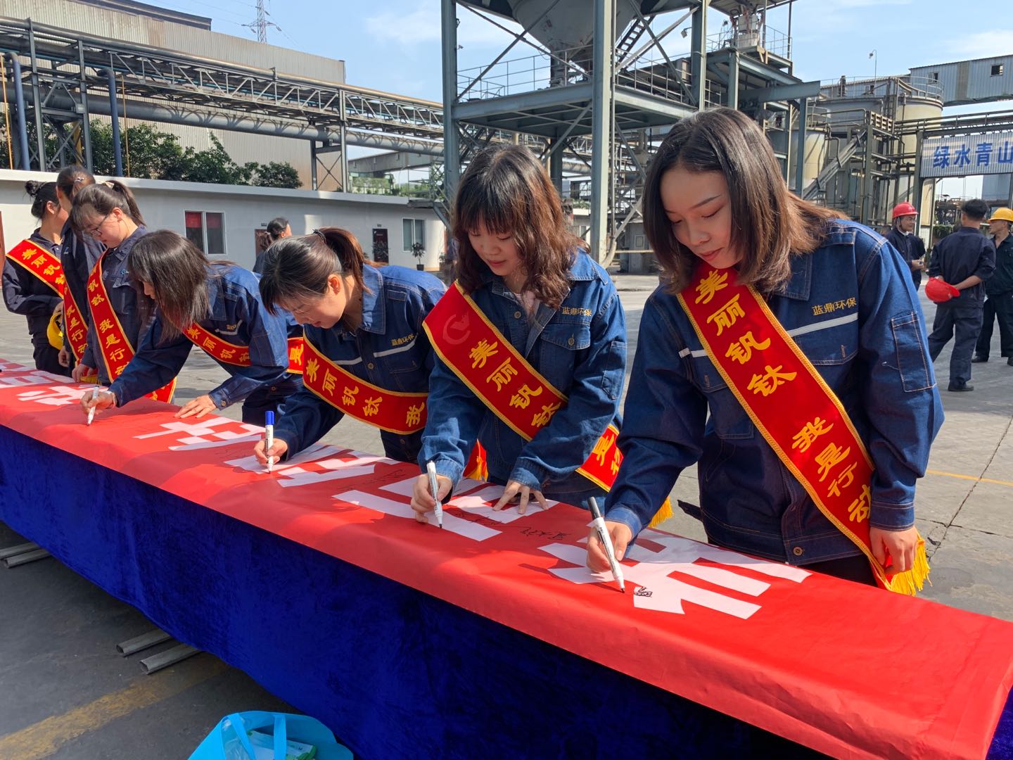 倡議書(shū)宣讀結(jié)束后,全體人員依次在“美麗釩鈦,我是行動(dòng)者”橫幅上簽下自己的名字。名字=承諾,銘記使命,干好環(huán)保工作,為建設(shè)美麗釩鈦貢獻(xiàn)力量。