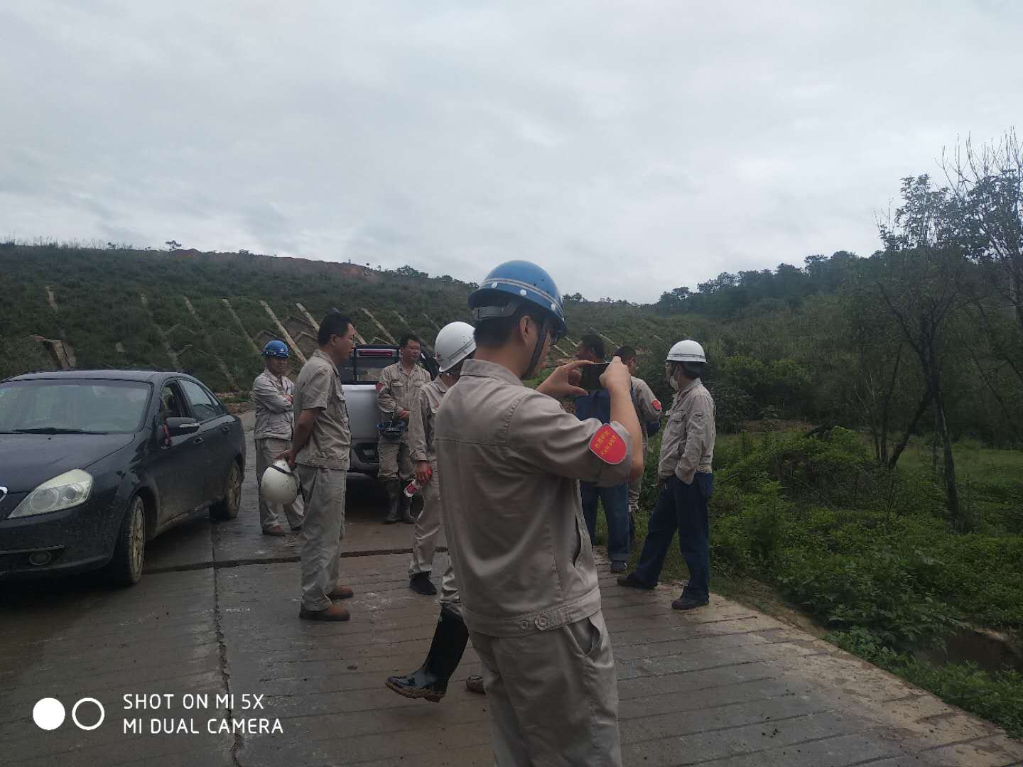 7月17日早7點,一場突如其來的暴雨襲擊了西昌,生產(chǎn)廠區(qū)未能幸免,檢修班長王成東迅速帶領(lǐng)住經(jīng)久公寓的員工開車來到廠區(qū),分組檢查各區(qū)域的防雨情況,電工斷開脫硫脫銷施工用電。脫硫廠區(qū)檢查無異常后,生產(chǎn)部部長孫小剛、副部長王建勇等又開車到零號溝脫硫灰堆場,檢查排水溝是否正常排水,邊坡是否滑塌,確保脫硫灰的正常運輸。