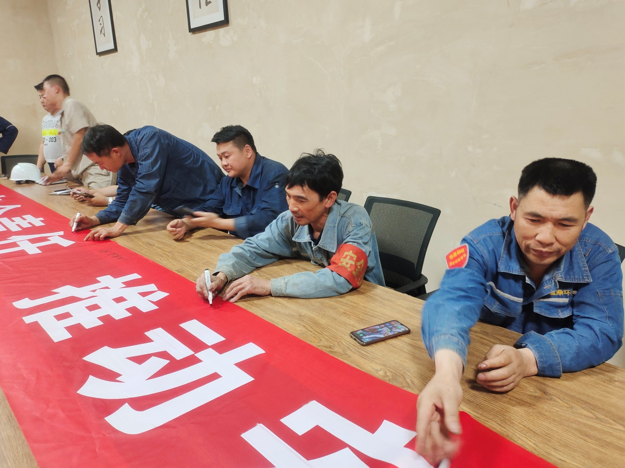 第三部分:各施工單位及公司管理人員簽下軍令狀,即在“落實安全責任 推動安全發(fā)展”橫幅上簽字,承諾盡職盡責做好安全生產(chǎn)工作。