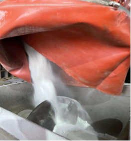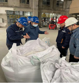 12月10日成渝釩鈦安環(huán)部部長楊俊良、威遠(yuǎn)藍(lán)鼎總經(jīng)理唐剛、生產(chǎn)部長曾中東在現(xiàn)場等候第一批合格硫酸鈉的產(chǎn)出。10:11第一批合格的硫酸鈉順利產(chǎn)出23噸,14:00生產(chǎn)員工將料倉內(nèi)硫酸鈉用小包裝和噸袋進(jìn)行獨(dú)立包裝。