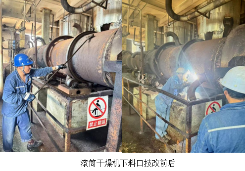 焦化提鹽項目承擔著將廢水中的鹽類物質轉化為工業(yè)級副產鹽的重要任務,干燥機作為焦化廢水資源化利用的關鍵環(huán)節(jié),也是決定產品水分、純度與生產連續(xù)性的核心設備。為解決堵塞難題,10月10日,威遠澤天副總經理組織生產技術和檢修班組骨干人員進行現(xiàn)場調研與技術分析,結合現(xiàn)場設備設施實際情況,決定在干燥機下料滾筒位置增加兩根振打裝置,依靠內部鋼球滾動使壁面物料振動落下,從而減少人工頻繁值守敲打,實現(xiàn)干燥出料連續(xù)運行。